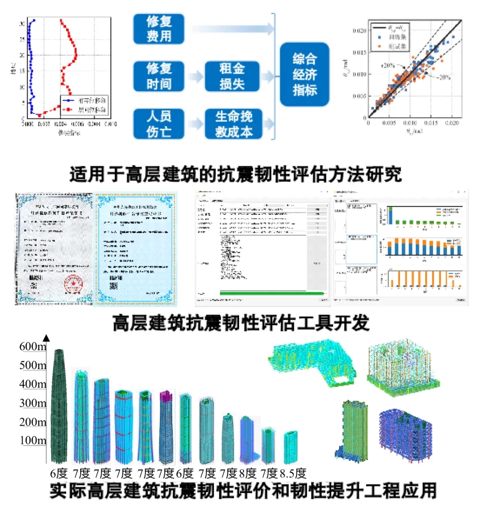 项目内容:面向韧性城市建设和新型城市化战略需求,依托住房城乡建设部科技计划项目“建筑抗震韧性评估技术研究”,针对高层建筑抗震韧性评估的理论和关键技术展开研究,建立了适用于高层建筑的抗震韧性评估方法、指标和构件数据库,开发了建筑抗震韧性评价软件等高效评估工具,提出了实现高层建筑抗震韧性的技术途径,为提升高层建筑抗震韧性提供了有力支撑。项目成果取得软件著作权2项,发表论文11篇(其中SCI/EI收录3篇),并对11项高层、超高层建筑工程案例开展了应用示范。经专家评审,项目成果总体达到国际先进水平,对促进高层建筑结构抗震新技术应用和设计理论发展、保障建筑安全、提升城乡防灾减灾能力有重要意义。