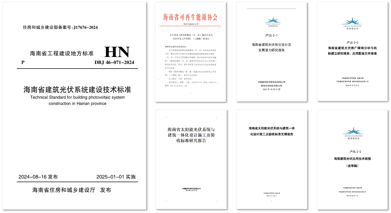 项目内容:本项目针对海南省高温高湿、高盐雾、强台风的独特气候条件,地方建筑光伏领域标准缺失等现状,重点围绕海南省建筑光伏系统的优化设计与安装方案展开研究,形成多项突破性成果:一是创新性提出光伏光热一体化解决方案,实现能源利用效率的双重提升;二是打破行业壁垒,建立建筑业与电力行业协同作业的全新模式,解决跨领域协作效率低下的问题;三是结合海南气候风险特征,构建覆盖设计、施工、运维全环节的全维度防护与协同设计体系,保障建筑光伏系统长期稳定运行。项目成果包括《海南省建筑光伏系统建设技术标准》DBJ46-071-2024、《海南省整县(市、区)推进分布光伏开发工作导则》标准/导则2部,研究报告4部,专题报告6部,示范项目3项。成果共同构建起覆盖建筑光伏系统全生命周期的技术标准体系,以及贯穿项目审批、建设、运维的全链条政策管理体系。为验证成果实用性,项目选取华能海口康力药业项目、海口罗牛山产业园项目、中国绿发文昌淇水湾旅游度假综合体项目作为示范工程,成功实现技术标准与解决方案的落地应用。行业主管部门验收评价“优秀”。项目为海南省建筑光伏系统的建设提供了重要技术支撑,对推动实现“双碳”目标具有积极意义。